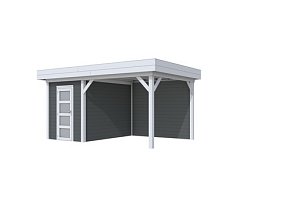 W1001656-25 vuren Topvision Premium Kiekendief, 200x300 en luifel 300 cm, wanden antraciet en basis lichtgrijs