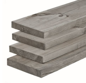 W06556 Midden-Europees vuren steigerplank 29x190x5000 mm, grijs geïmpregneerd Op=Op