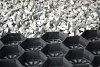Het verdelen van uw grind of split in de platen met honingraatprofiel zorgt tevens voor stabiliteit. De splitplaten met daarin 5-6 cm grind of split legt u op een stevige ondergrond zoals gebroken puin. Dit geheel zorgt voor een stabiliteit die voldoende is voor zware belasting, zoals het frequent erop rijden met auto’s en andere zware voertuigen. De drukvastheid is door TNO getest en komt ongevuld al hoger uit dan 200ton/m2. Gevuld is de drukvastheid nog vele malen hoger. Door de gaten in de splitplaten heeft u geen last van water. Deze zorgen in combinatie met het grind voor een goede drainering.